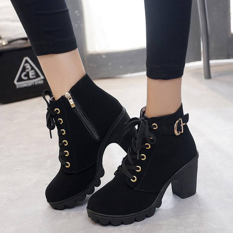 Looking for footwear that seamlessly blends fashion with comfort? Our High Heeled Belt Buckle Ladies Boots are crafted to ensure you look stunning while feeling great. With a closed-toe design, lace-up closure, and distinctive belt buckle detail, these boots are the ultimate choice for modern women who value both elegance and durability.