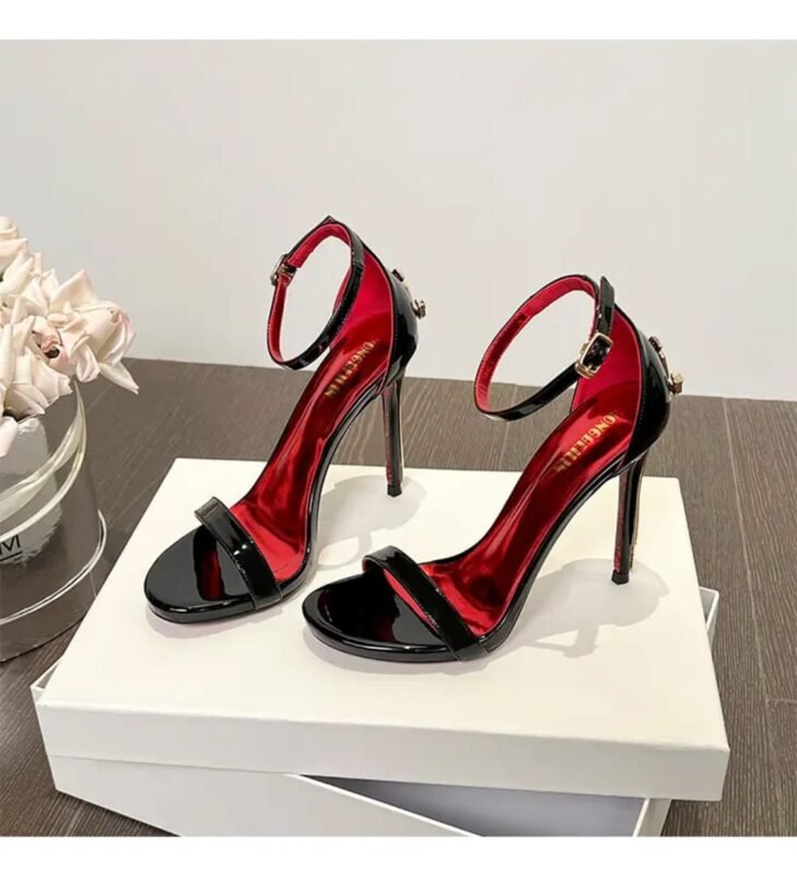 Women’s Open Toe Super High Heel Sandals Red Black | Metal Heel Red Bottom Party Shoes