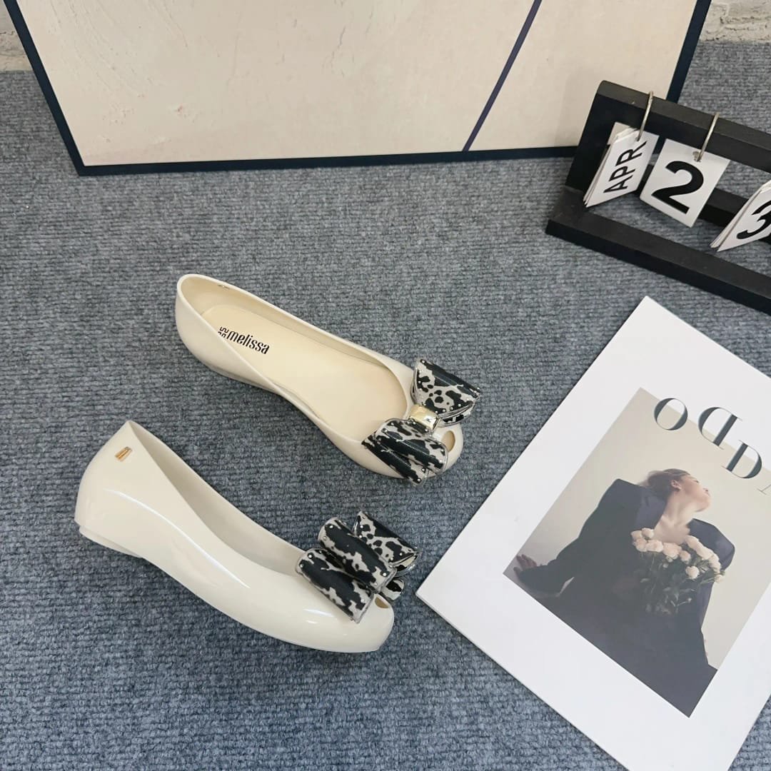 Women’s Jelly Fish Mouth Bowknot Shoes White Black | Stylish Melissa Style Jelly Pumps